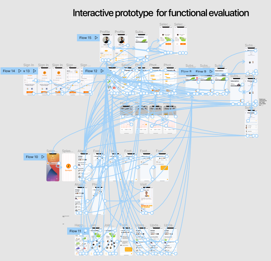 This prototype was refined through several iterations, consistently conducting internal testing of everything from usability, understanding and coherrency. Several potential use-cases were considered and some were used as basis for refinements, giving a clearer vision of who this app is designed for.